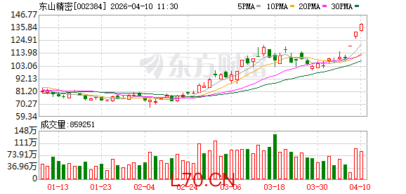 东山精密成交额超100亿元