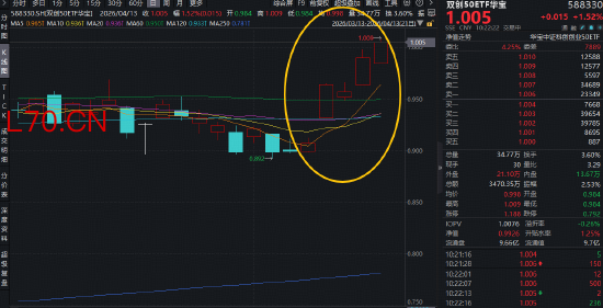 今日(4月13日)科技成长方向大反攻,覆盖科创板+创业板高成长龙头的硬科技宽基——双创50ETF华宝(588330)场内价格盘中拉升1.8%,现涨1.52%,冲击日线5连阳,续创历史新高!