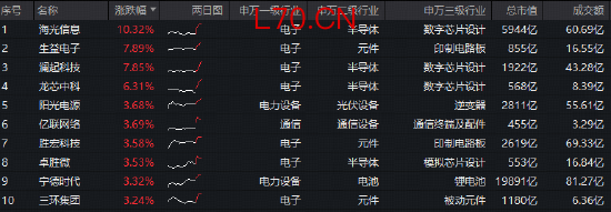 成份股方面,海光信息领涨超10%,生益科技、澜起科技涨逾7%,龙芯中科涨超6%,阳光电源、亿联网络、胜宏科技、宁德时代等个股跟涨。