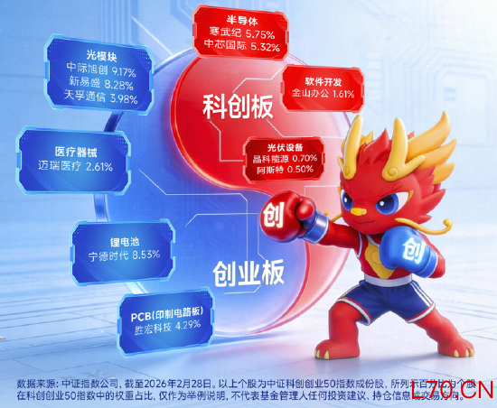 风险提示:双创50ETF华宝被动跟踪中证科创创业50指数,该指数基日为2019.12.31,发布于2021.6.1,该指数2021-2025分年度涨跌幅为: 0.37%、-28.32%、-18.83%、13.63%、60.86%,指数成份股构成根据该指数编制规则适时调整,其回测历史业绩不预示指数未来表现。文中提及的指数成份股仅作展示,个股描述不作为任何形式的投资建议,也不代表管理人旗下任何基金的持仓信息和交易动向。基金管理人评估的双创龙头ETF风险等级为R4-中高风险,适宜积极型(C4)及以上的投资者,适当性匹配意见请以销售机构为准。任何在本文出现的信息(包括但不限于个股、评论、预测、图表、指标、理论、任何形式的表述等)均只作为参考,投资人须对任何自主决定的投资行为负责。另,本文中的任何观点、分析及预测不构成对阅读者任何形式的投资建议,亦不对因使用本文内容所引发的直接或间接损失负任何责任。基金投资有风险,基金的过往业绩并不代表其未来表现,基金管理人管理的其他基金的业绩并不构成基金业绩表现的保证,基金投资须谨慎。