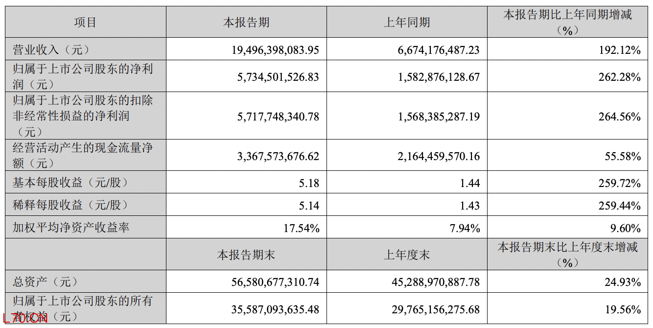 此前一日,中际旭创发布了2026年第一季度报告,公司实现营收194.96亿元,同比大幅增长192.12%;归属于上市公司股东的净利润57.35亿元,同比激增262.28%;扣非净利润57.18亿元,同比增长264.56%,三项核心指标均创下历史同期最佳水平。