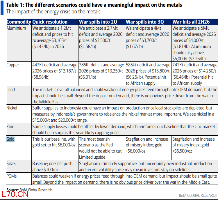 美银维持黄金12个月目标价6000美元/盎司,但不同战争情景对黄金的含义截然不同。