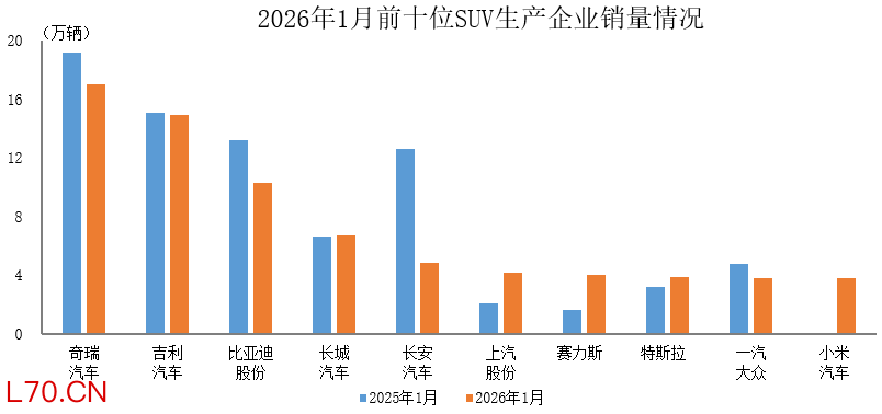中汽协:1月销量排名前十位的SUV生产企业共销售73.4万辆