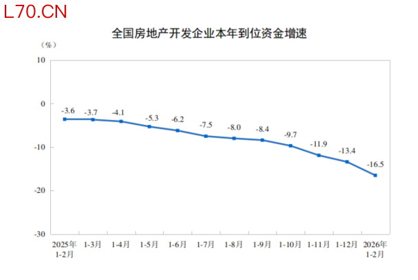 国家统计局:1—2月份,房地产开发企业到位资金同比下降16.5%