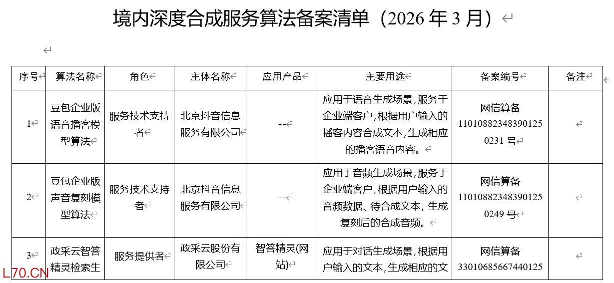 国家互联网信息办公室发布第十六批深度合成服务算法备案信息