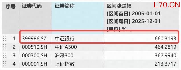 另一方面,从历史长期表现看,银行板块具备优异的抗风险能力。数据显示,截至2025年末,中证银行指数自2005年以来累计收益率高达660.32%,显著领先上证指数、沪深300等主流宽基指数。